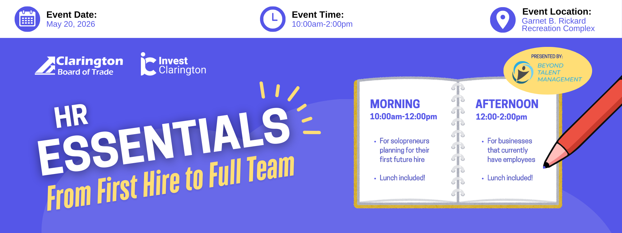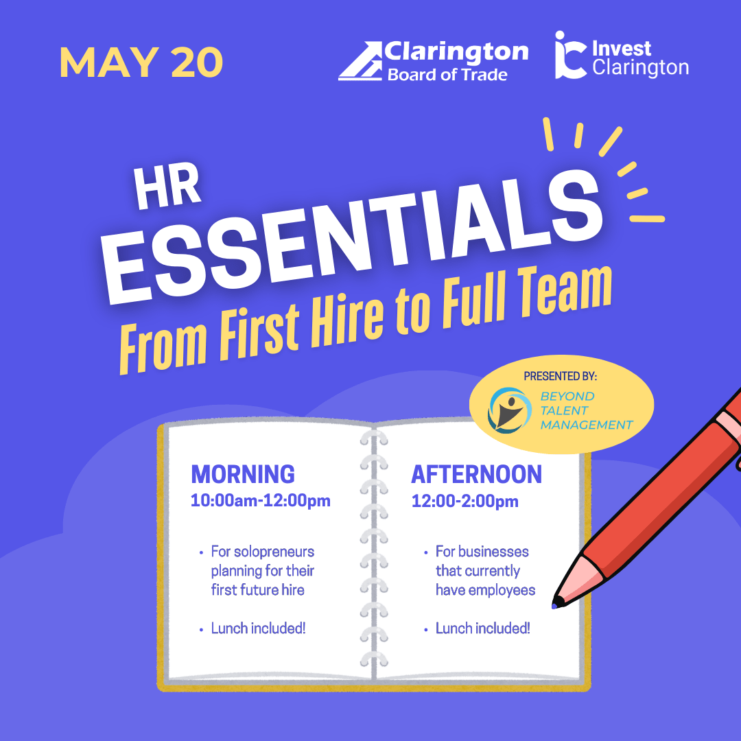 CBOT & Invest Clarington invite you to join us for HR Essentials: From First Hire to Full Team - a session designed to give you the knowledge and confidence to build your team the right way.