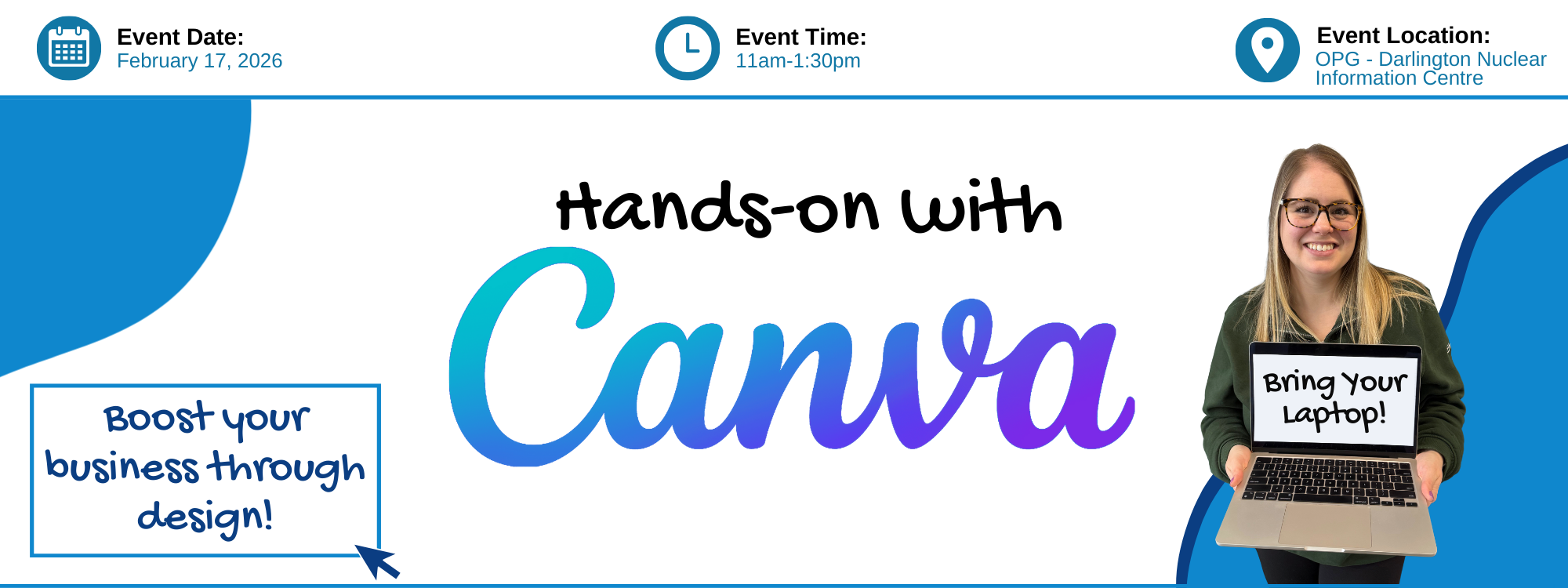 This is a relaxed, practical workshop designed to help you get comfortable with Canva and start creating right away. We recommend bringing a laptop and mouse, or any device with a larger screen, so you can follow along comfortably and get the most out of the hands-on practice.