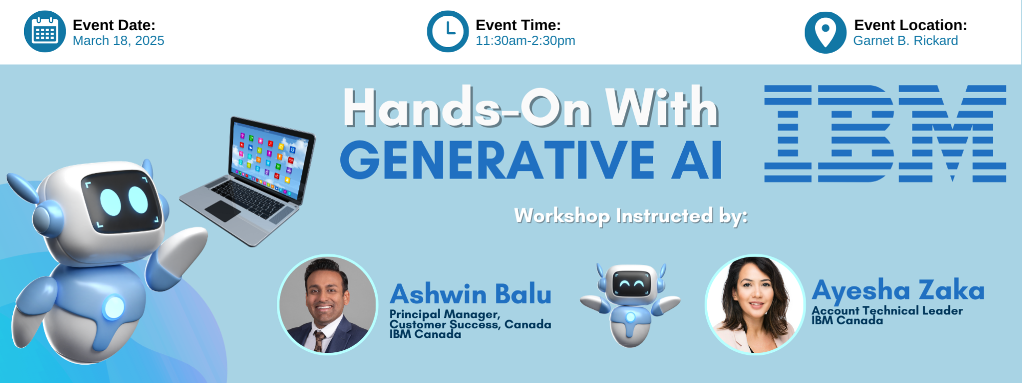 - Hands-On Experience: You'll have the chance to try it out! Create emails, marketing materials, and new ideas with AI. Bring a laptop or a device with a keyboard (no cellphones, please) to participate fully. IBM experts will guide you through each step.