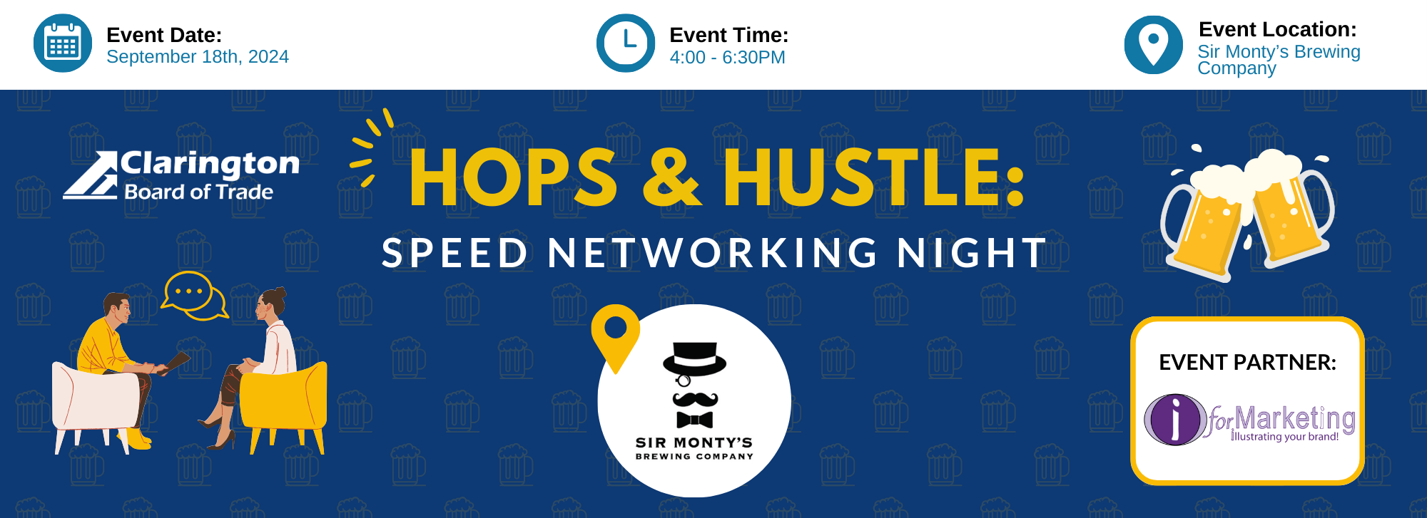 Join the Clarington Board of Trade at Sir Monty's Brewing Company in Courtice on September 18th for an exciting evening of speed networking!